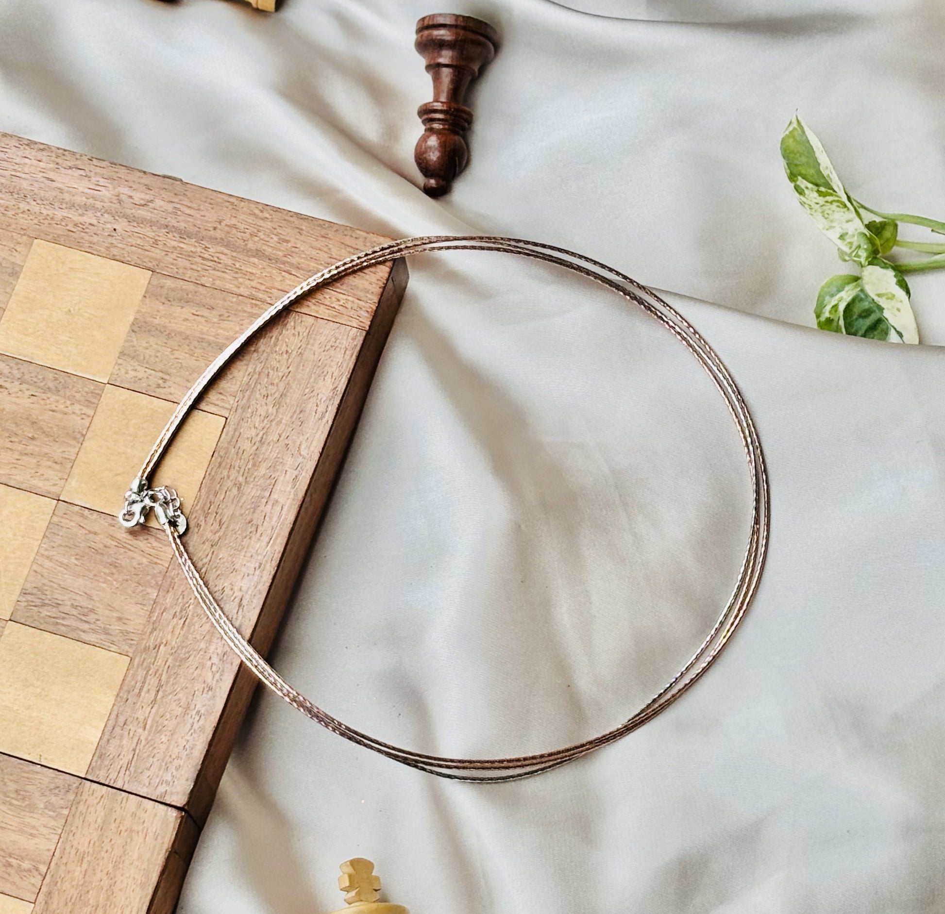 A timeless addition to your jewelry collection, this classic layered silver neckpiece features a delicate yet bold design. The interwoven strands provide a subtle shine, adding sophistication and charm to any outfit. Ideal for layering or wearing alone, this piece transitions effortlessly from day to night, enhancing your look with refined elegance.