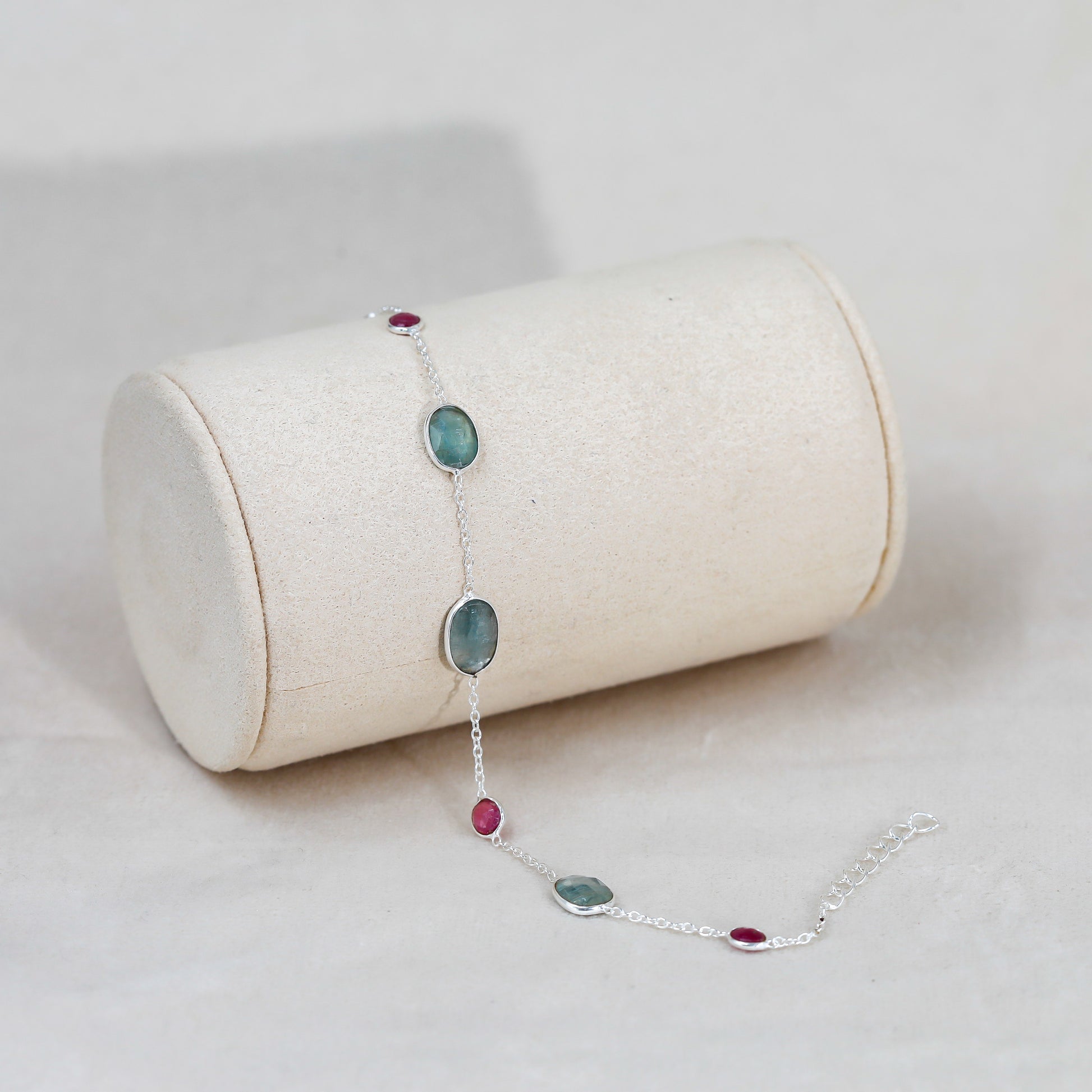 Delicate and calming, this green kyanite silver bracelet captures the essence of natural beauty. A touch of elegance that adds a serene charm to any look.