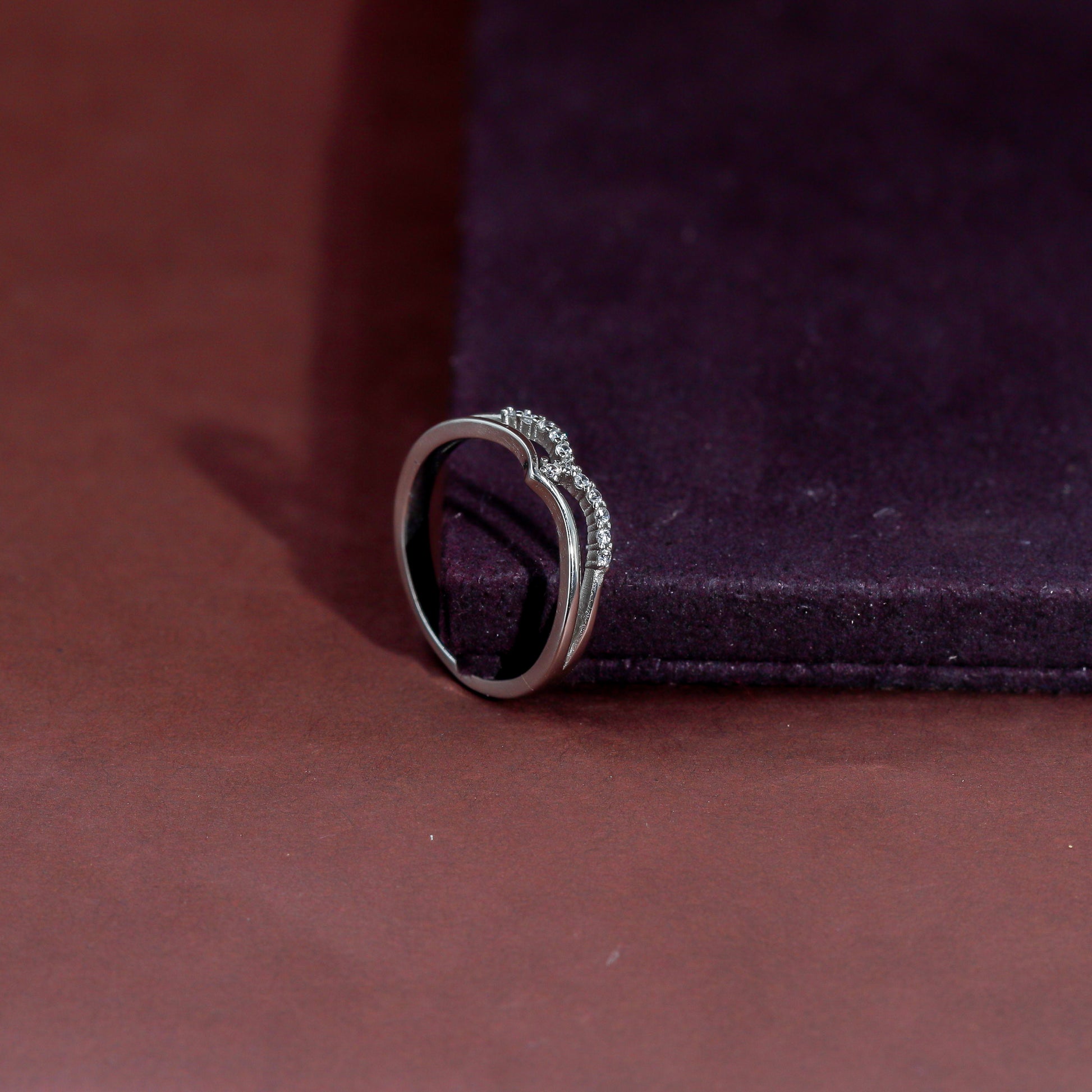 Sleek and sophisticated, this silver ring features a delicate curved design accented with sparkling stones. A perfect blend of elegance and modern style, making it ideal for both everyday wear and special occasions.