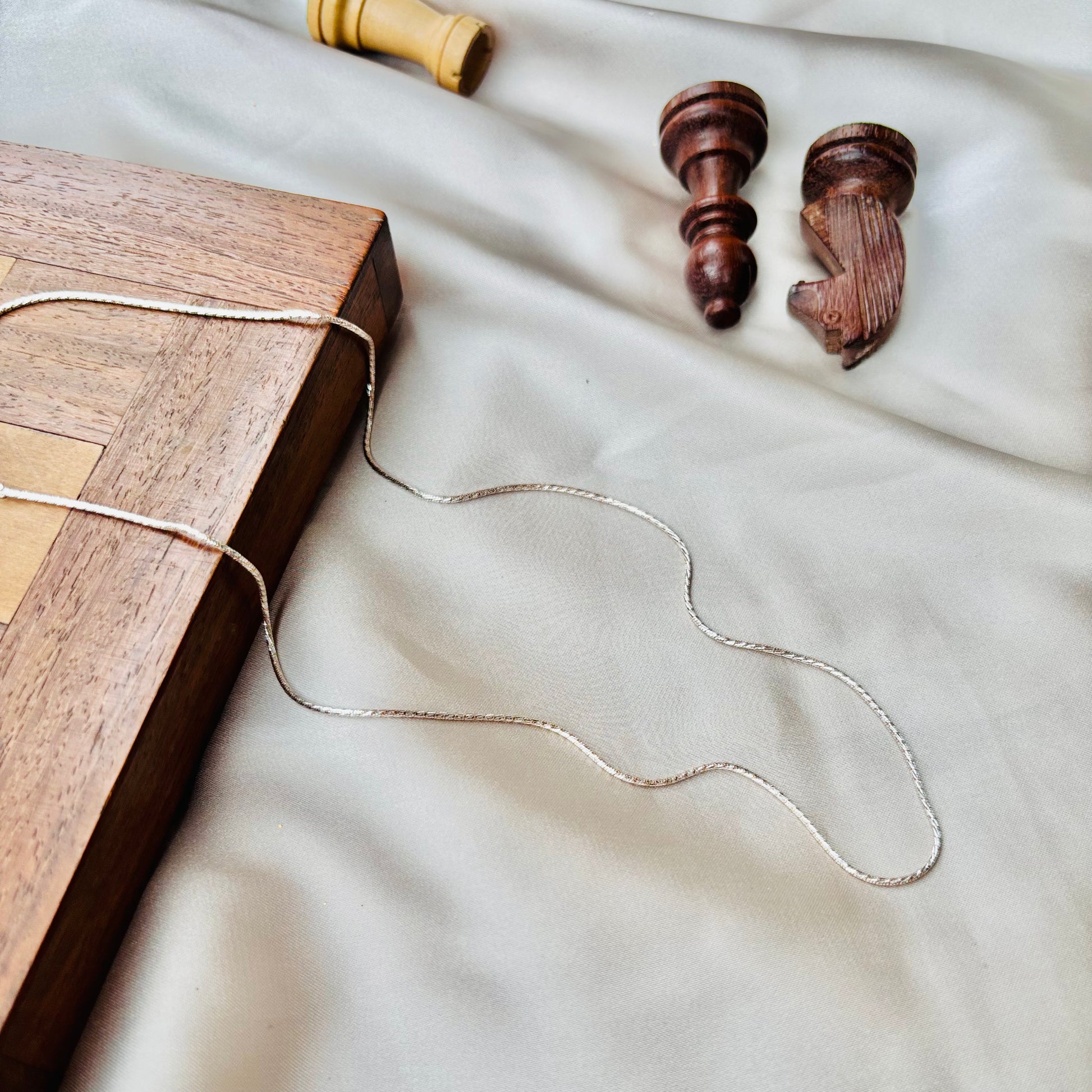This elegant silver snake chain necklace features a smooth, fluid design that gracefully drapes along the neckline. With its sleek and sophisticated look, it adds a subtle touch of shine to any outfit, making it perfect for both casual and dressy occasions. Effortlessly timeless and versatile, this necklace is a must-have accessory for every jewelry collection.